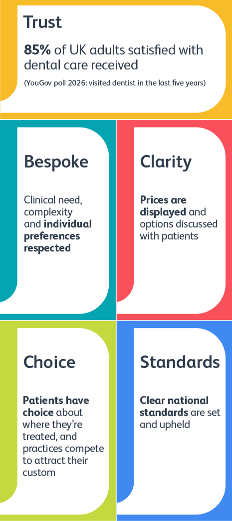 There is a clear regulatory framework that requires dentists to act in the interests of patients and to be transparent on costs and treatment options. Most practices provide both NHS and private care. In our ongoing conversations with Governments, we’ve made it clear that NHS dentistry must be able to stand on its own two feet financially.